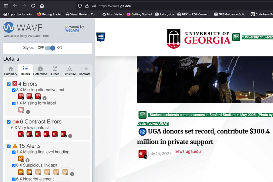 Unfortunately, while these errors are easy to find and remediate even established and reputable sites fail to pay attention to these details. There are more problems to be found on the following site that WAVE didn’t pick up on, too. I emailed the owner of this site and got a response on 4/4/2025 saying they planned to correct parts of the site this year.